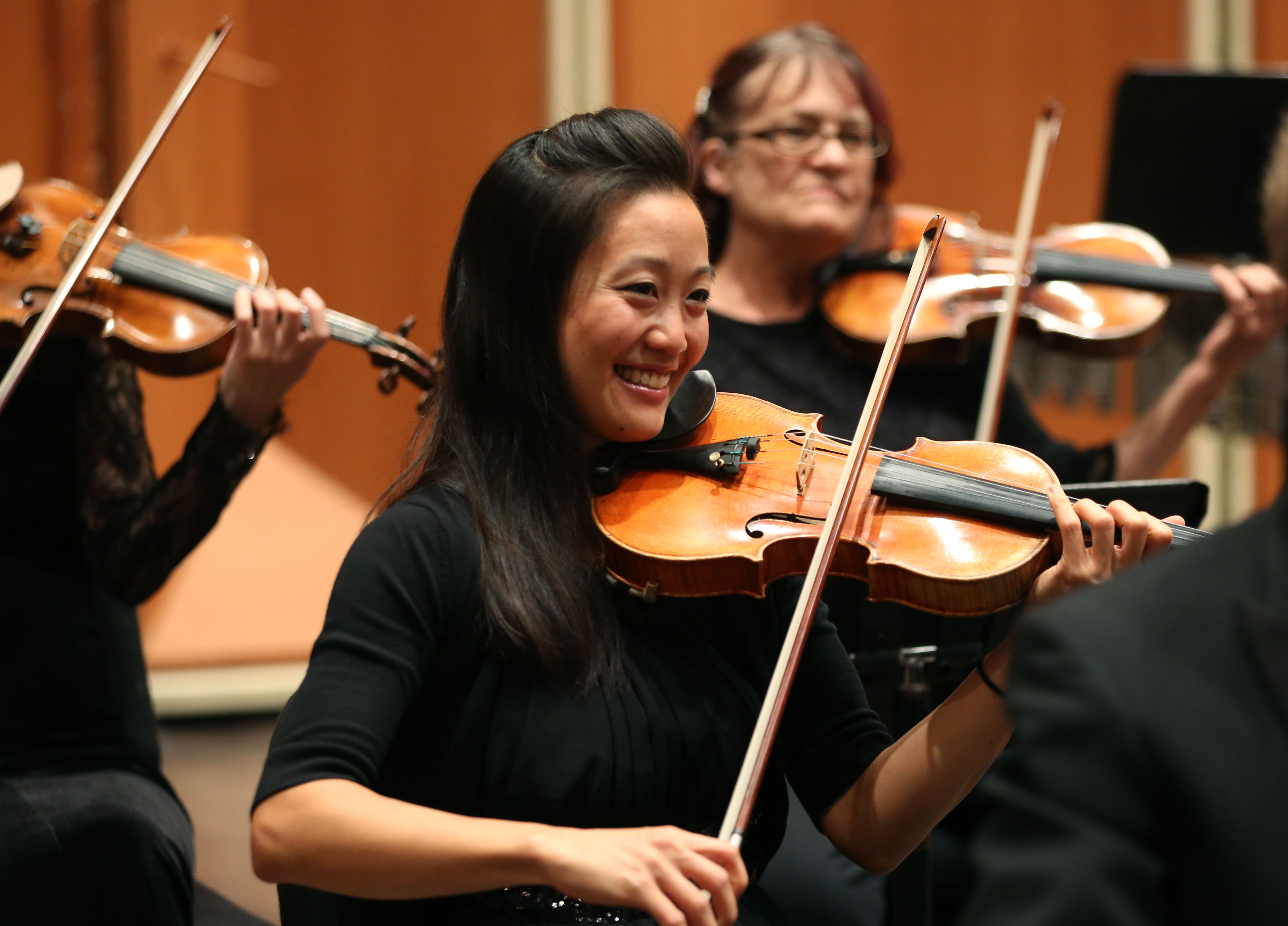 Milwaukee Symphony Orchestra, Conductor and Orchestra & Violinist. Photos by Jonathan Kirn.